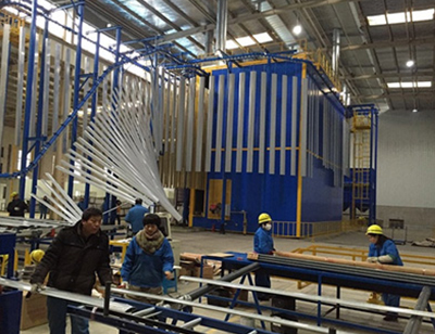 噴塑是將塑料粉末噴涂在零件上的一種表面處理方法。鋁材噴塑也就是我們常講的靜電粉末噴涂涂裝,其處理工藝是20世紀(jì)80年代以來采用較為普遍的一種金屬表面處理的裝飾技術(shù)。該技術(shù)與普通噴漆表面處理相比,優(yōu)點(diǎn)體現(xiàn)在工藝先進(jìn)、節(jié)能效率高、穩(wěn)定可靠、色澤艷麗等方面。因此,常常被應(yīng)用于輕工、家用裝修領(lǐng)域。其工作原理在于將塑料粉末通過高壓靜電設(shè)備充電,在電場(chǎng)的作用下,將涂料噴涂到工件的表面,粉末會(huì)被均勻地吸附在工件表面,形成粉狀的涂層;而粉狀涂層經(jīng)過高溫烘烤后流平固化,塑料顆粒會(huì)融化成一層致密的效果各異的終保護(hù)涂層;牢牢附著在工件表面。
